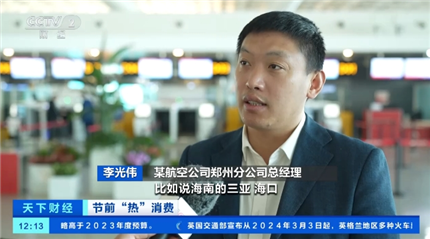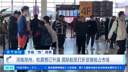 某航空公司郑州分公司总经理 李光伟:目前比较火热的是春运期间的一些旅游航线,比如海南的三亚、海口,云南的昆明、西双版纳等热门航线。相较于11月份、12月份,增长了10倍左右,票比较紧张。