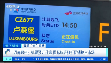 国际航班方面,近期随着出境游需求的增加,部分航空公司加密和新开郑州至卢森堡、米兰以及济州等地的国际航线,上座率也稳步上升。部分航空公司还推出了线路打折套票,抢占节前市场。