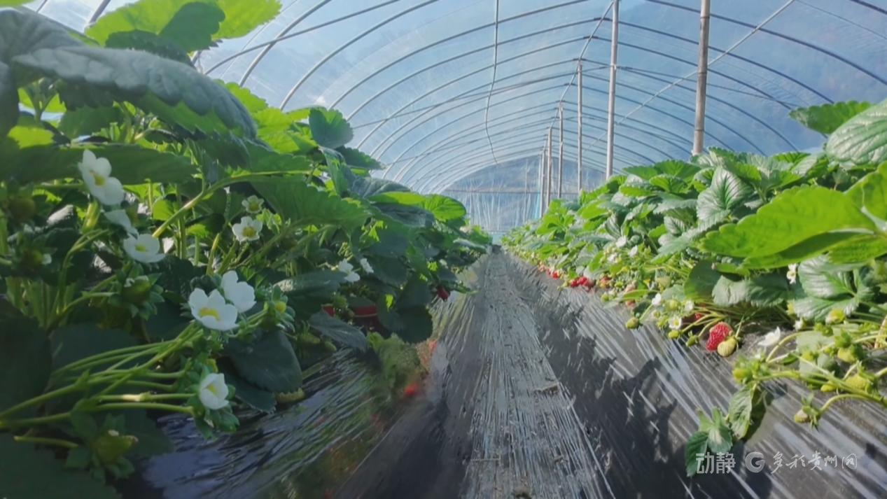 在六枝特区岩脚镇羊场村,50余亩草莓较往年提前近十天进入采摘期,大棚内绿意葱茏,鲜红果实点缀其间,一派生机盎然。