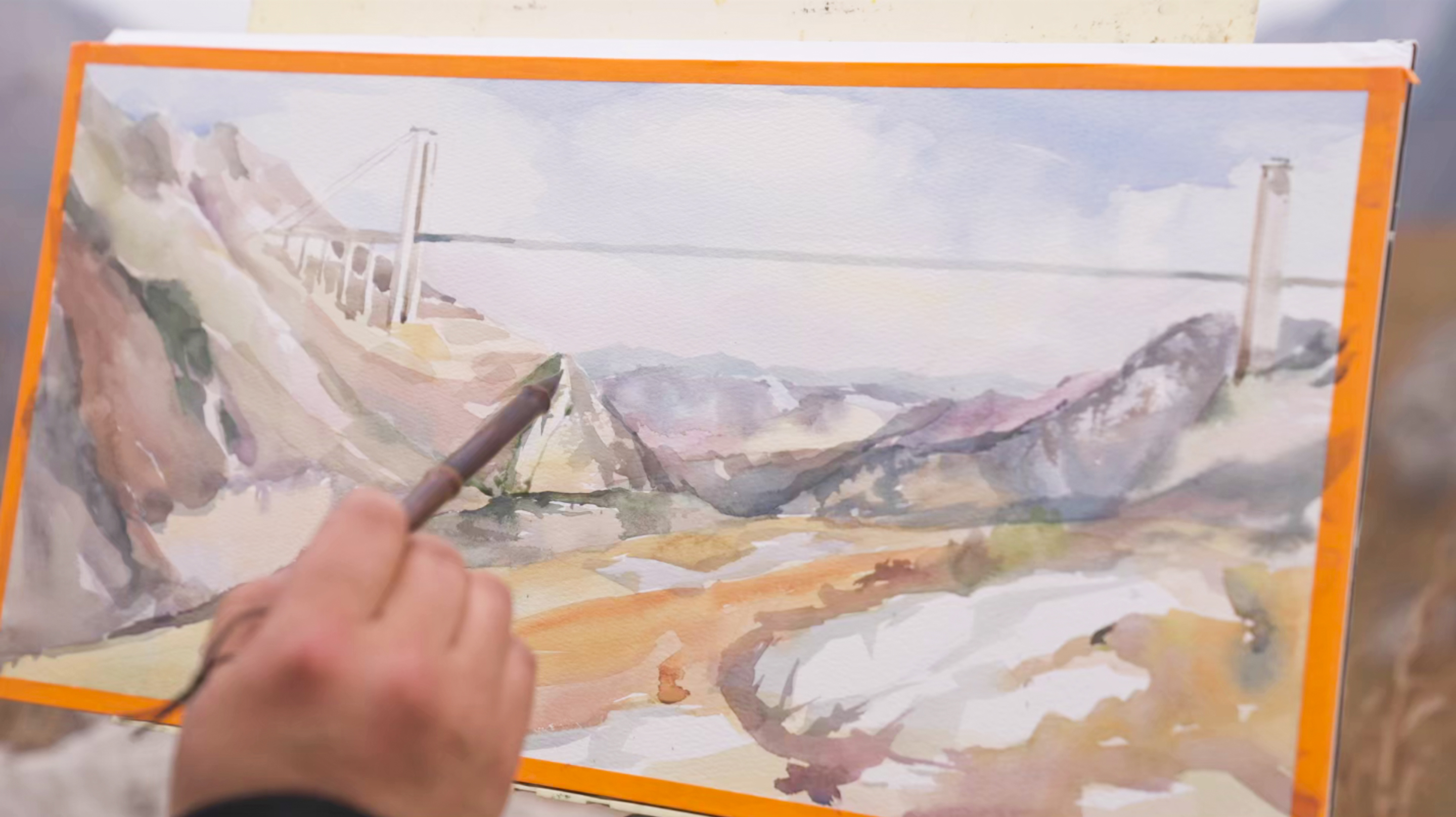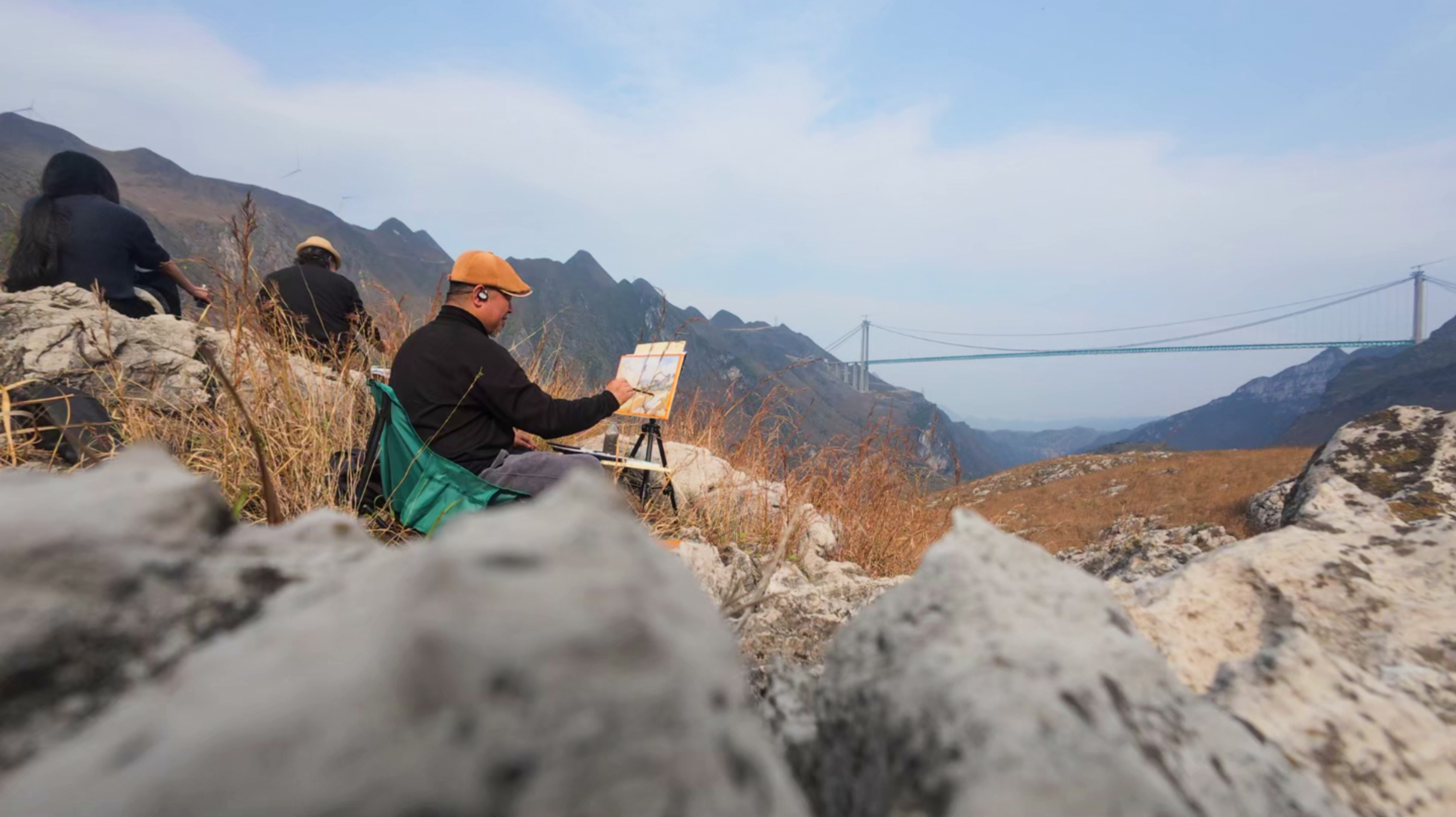 画家们登高写生,将钢铁长虹与苍茫山河绘入画卷,见证人类伟力与自然鬼斧神工的和谐共鸣。