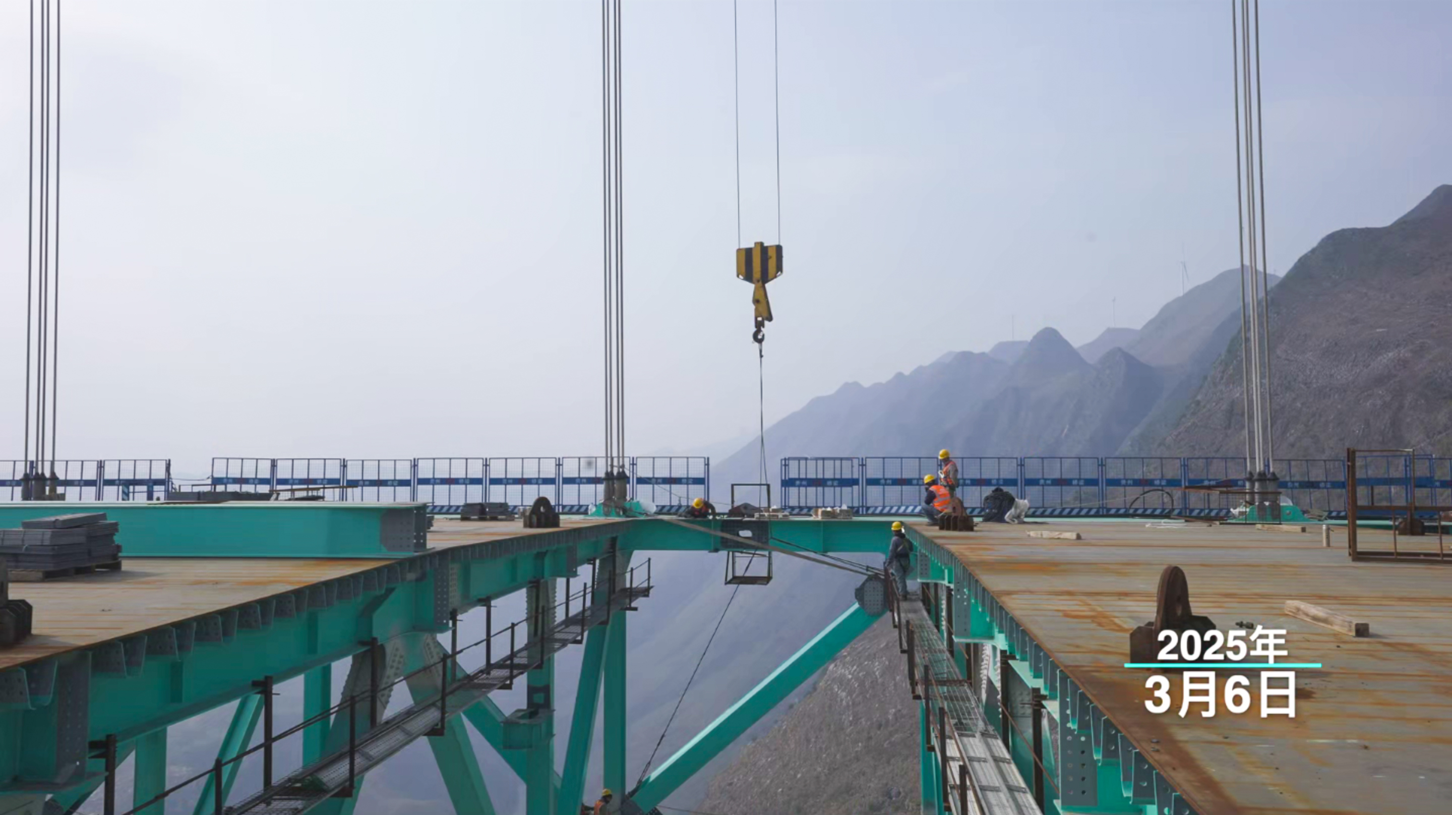从无到有,大桥的成长,是一场与自然的博弈,更是一场与时间的赛跑。镜头回溯,四年前的峡谷只有飞鸟穿梭。