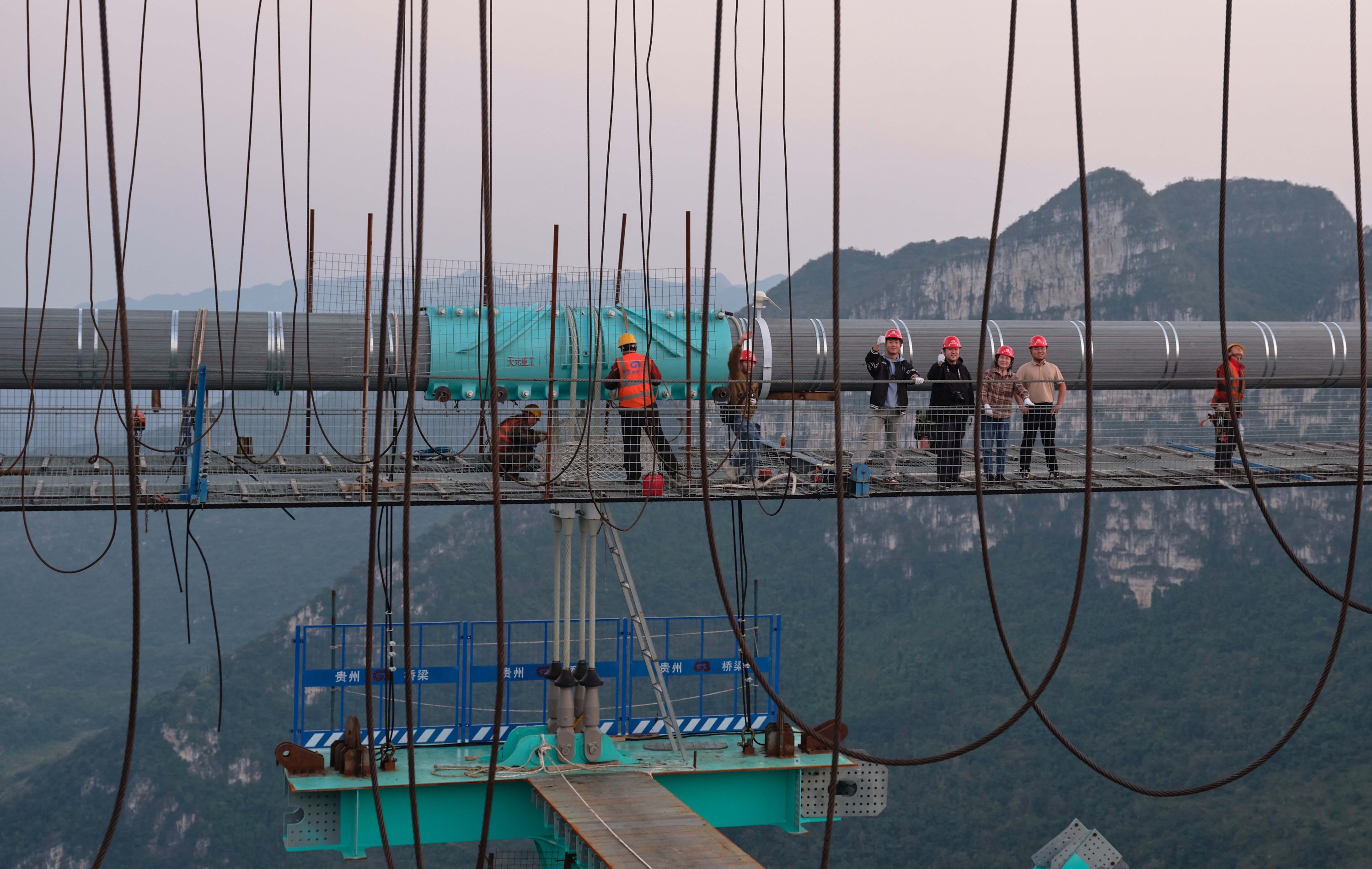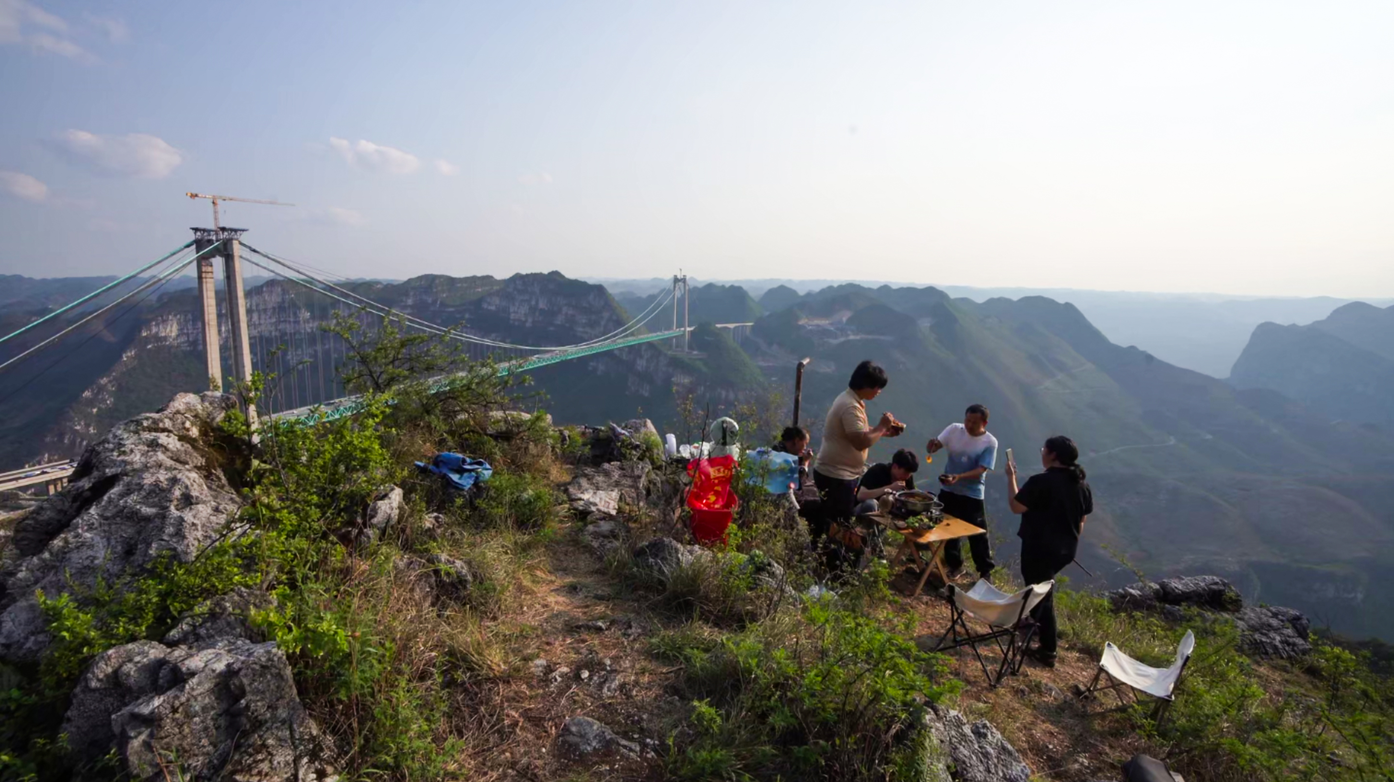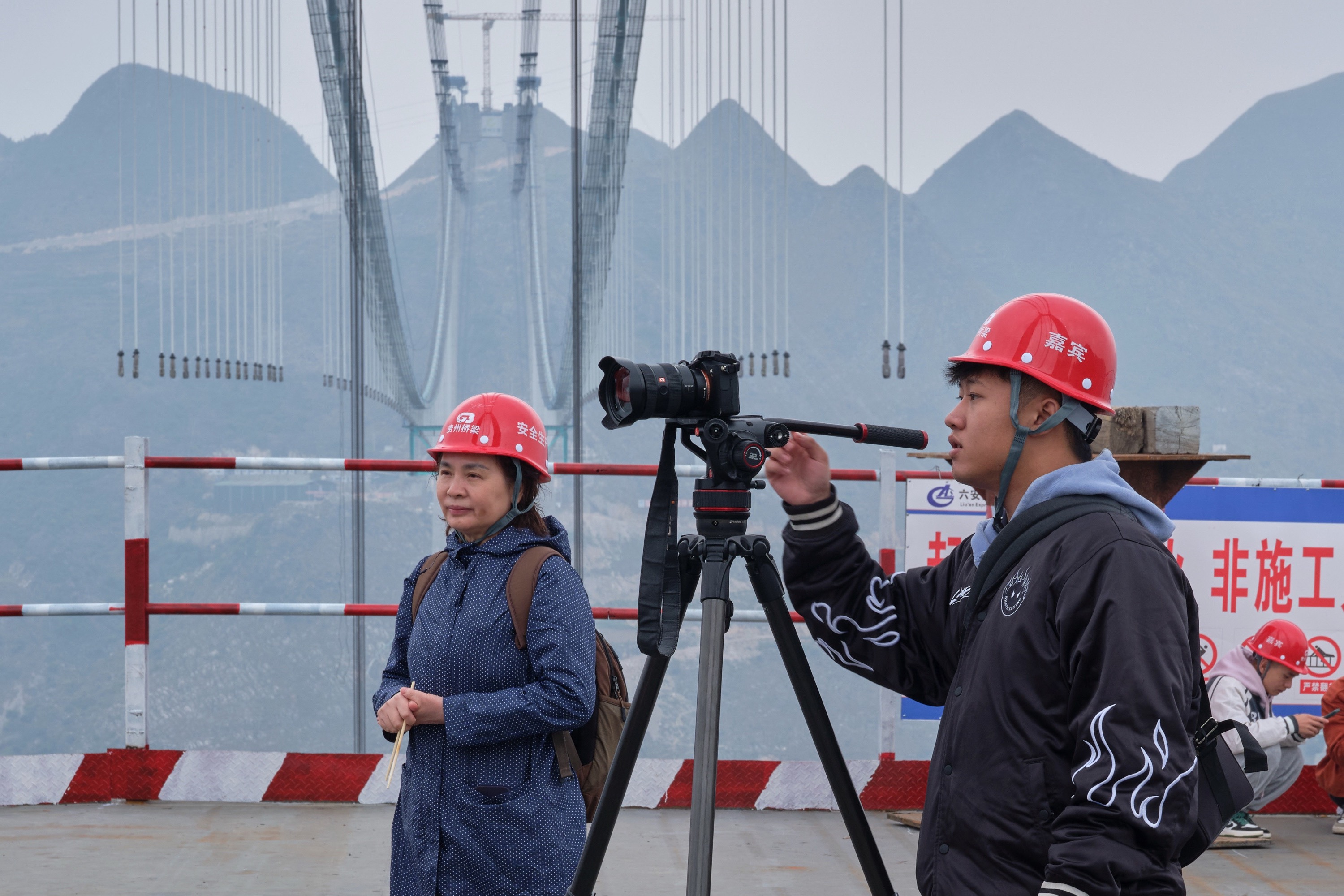 这里有硬核科技,更有人性光辉。恐高的王玉娟从不敢踏猫道,到从容解说桥旅融合项目;摄影师龚小勇与建设者结下深厚情谊,用镜头定格每一个闪光瞬间;