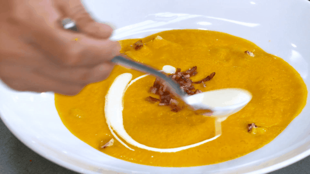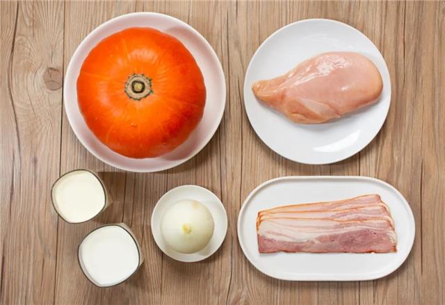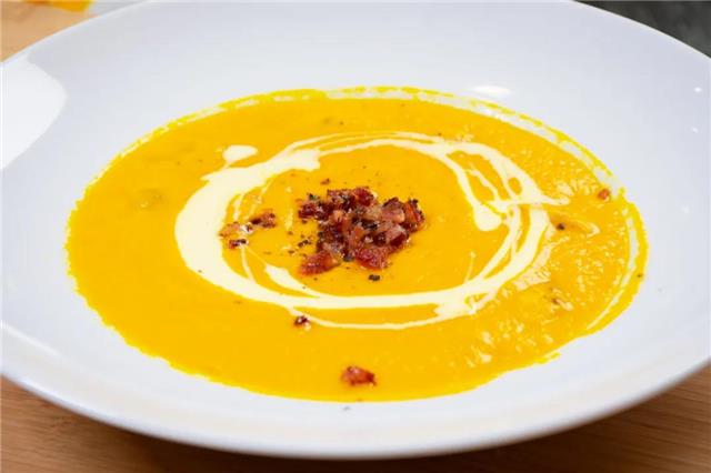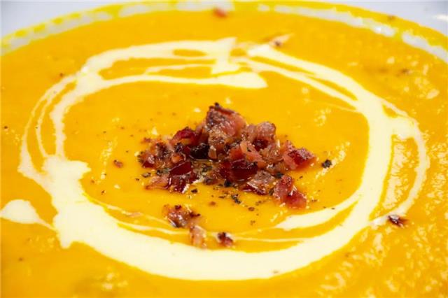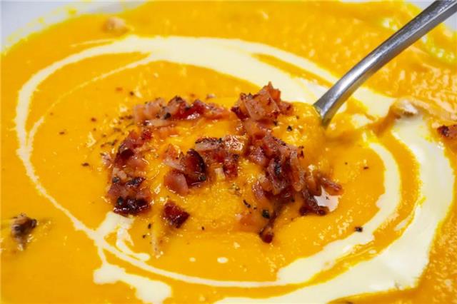 在寒冷的冬天来一份浓郁丝滑的浓汤真的超满足!这道香煎鸡肉培根浓汤非常漂亮,看起来就很有食欲!南瓜汤香味浓郁却一点也不厚重!还能同时吃到煎得焦脆的培根和嫩嫩的鸡肉,口感一级棒!赶紧在家试试哦~