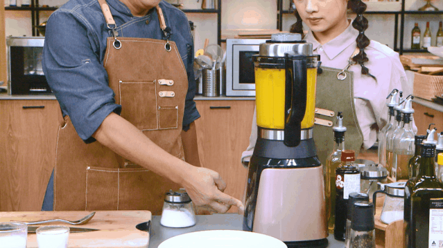 将鸡胸肉、培根下锅煎香,然后放入破壁机一起熬煮。