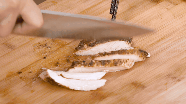 将煎好的鸡胸肉铺在碗底,做好的浓汤倒入碗中。