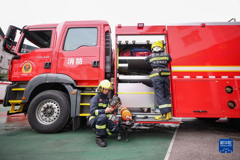 1月21日,贵州省黔东南苗族侗族自治州丹寨县消防救援大队队员在整理消防装备。新华社发(黄晓海 摄)