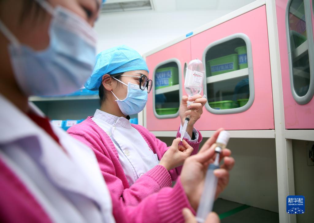 1月21日,贵州省黔南布依族苗族自治州福泉市中医医院护理人员在配药。新华社发(黄欢 摄)