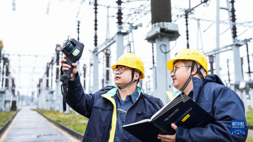 1月21日,南方电网贵阳供电局工作人员在500千伏贵阳变电站进行站内保供电巡检。新华社记者 陶亮 摄