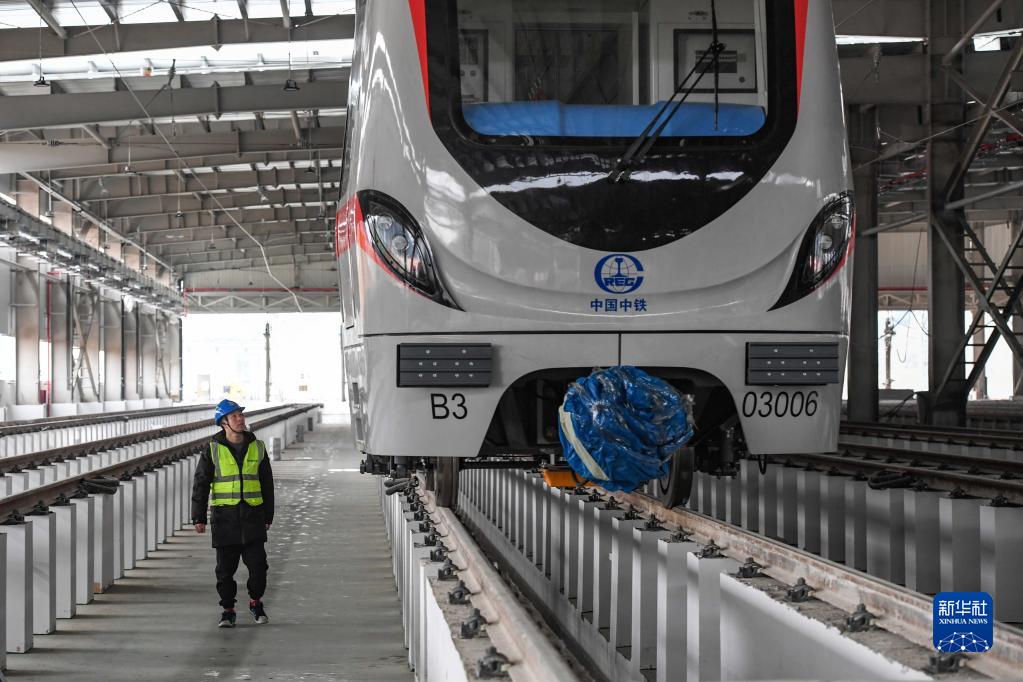 1月21日,值班人员在贵州省贵阳轨道交通三号线花溪南停车场巡逻检查。新华社发(邓刚 摄)