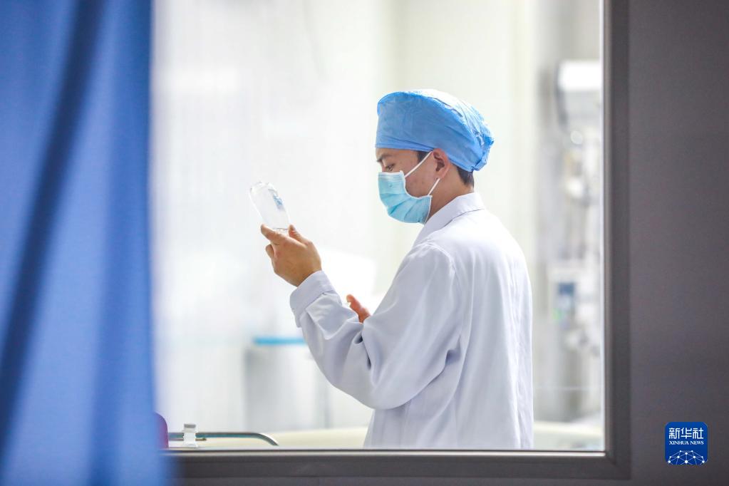 1月21日,医护人员在贵州省毕节市第一人民医院重症医学科配置药物。新华社发(陈曦 摄)