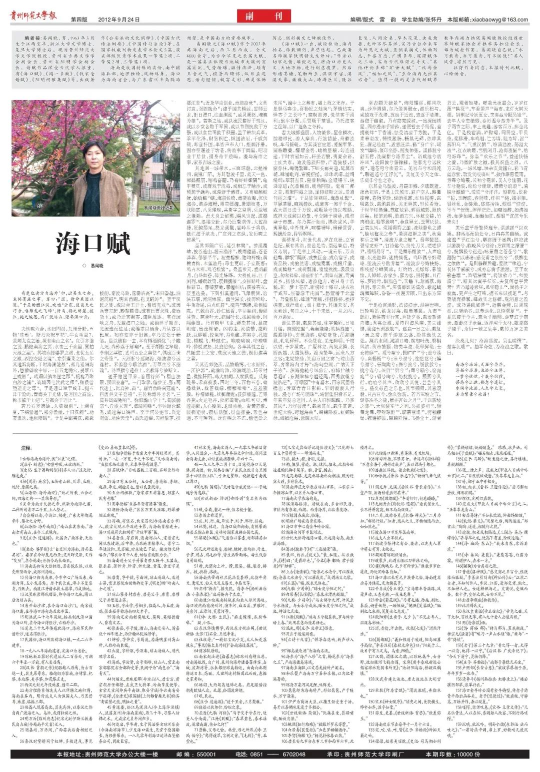 以易闻晓教授为核心专家的中国赋学研究团队长年深耕在中国诗学、中国赋学、晚明文学研究和诗赋创作上,将文论、哲学、创作和文字、音韵、训诂等多学科结合起来,将传统语言文字学、名物考据与文学研究结合起来进行赋学研究,开拓了语用和名物研究的新路向。易闻晓教授的名作《海口赋》享誉海内外,被称“当代无出其右”;创作的《孔学堂赋》成为贵州的文化新名片。