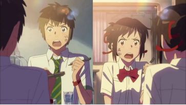 在电影中新海诚让《你的名字》中的角色参演了《天气之子》。帆高他们去老奶奶家时,瀧出来客串了很长时间。三叶做起了首饰柜台导购员,在帆高为阳菜买生日礼物,担忧阳菜是否喜欢时,三叶鼓励了帆高。瀧和三叶的出现,都给帆高和阳菜两人的感情起到了推波助澜的作用。三叶的妹妹四叶,也在影片最后有一闪而过,虽然年龄长大相貌有所改变,但是不变的发型依然让人眼熟。