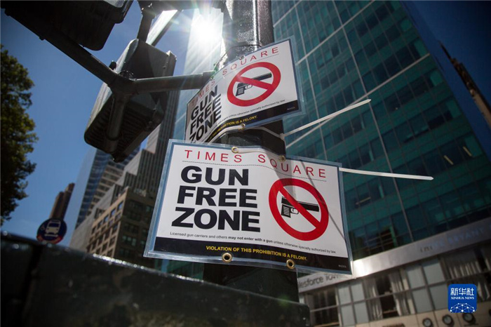 ▲作为美国纽约地标的时报广场9月1日起正式成为“禁枪区”,市政府在路口竖立醒目标识牌,以执行纽约州一项于当天生效的枪械管控法律。根据这项法律,普通公民不得携带枪支进入纽约州辖区内公园、教堂、剧院、学校等数十类“敏感”场所。