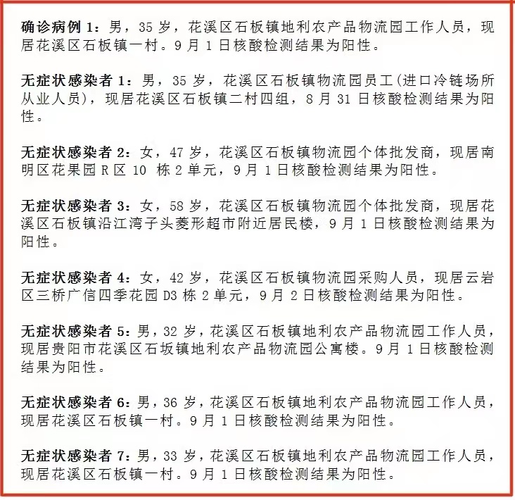 ▲截至9月2日11时40分,贵阳市本轮疫情共报告1例确诊病例,7例无症状感染者。8名病例已转运至省将军山医院进行救治。目前,流调溯源、核酸筛查、隔离管控、环境消杀等应急处置工作正有序开展。