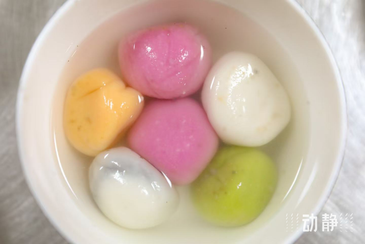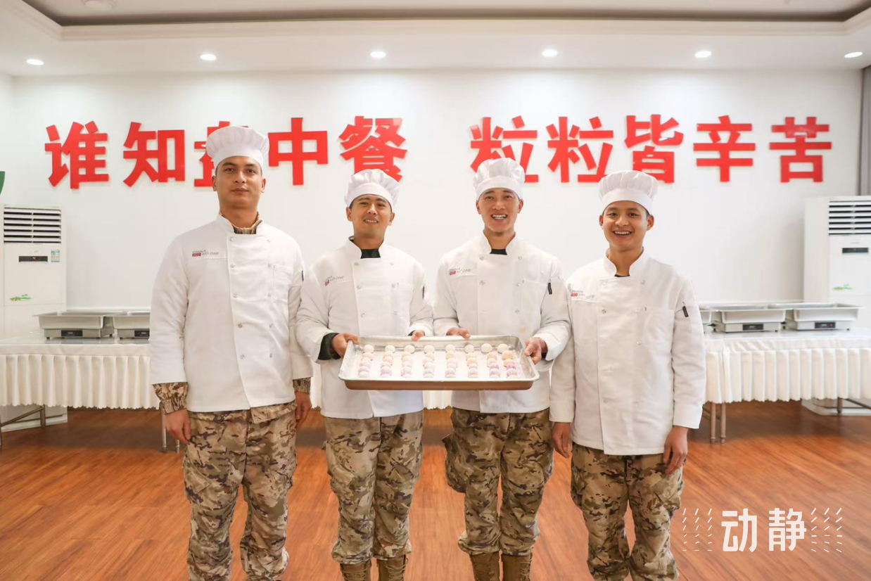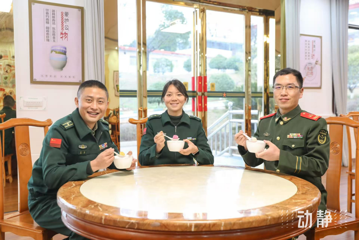 在炊事班的厨房里,官兵们正制作汤圆。和面、搓条、切剂、包馅、揉圆,很快,一碗碗热气腾腾的五彩汤圆被端上桌。汤圆色彩鲜艳,承载着家的味道,官兵们在品尝美食时,缓解了思乡之情。