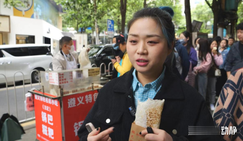 重庆游客谢雨告诉记者:“我们是在小红书上面看到了这家店,感觉是贵阳的特色,就很想过来尝一下,店里面人很多、很热闹,刚刚买了两份,味道还不错!”