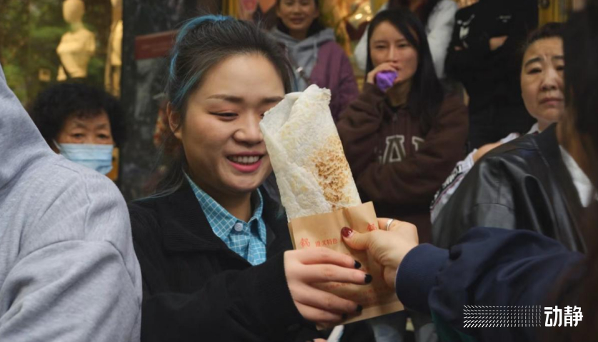 深圳游客唐糖告诉记者:“这家店在小红书、抖音上特别火,我是特意找过来的,大概排了15分钟的队,烤得皮特别焦、很香,今天我圆梦了!”