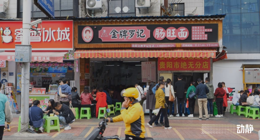 下午一点过,虽然已经过了饭点,贵阳市蔡家街的这家“老字号”肠旺面店内,依然顾客满座。记者发现,坐在路边就餐的顾客也有不少,其中不乏慕名而来的外地游客。