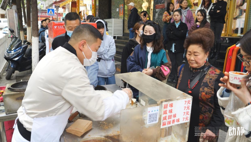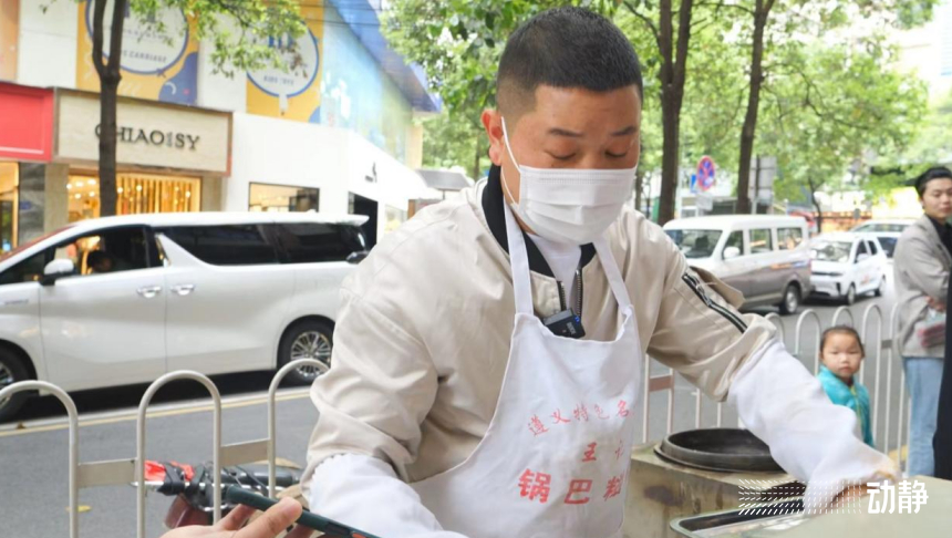在贵阳正新街,记者发现,虽然不是周末,这个特色小吃锅巴糍粑的摊位前,一连两个多小时,等候购买的顾客队伍都长达10多米。