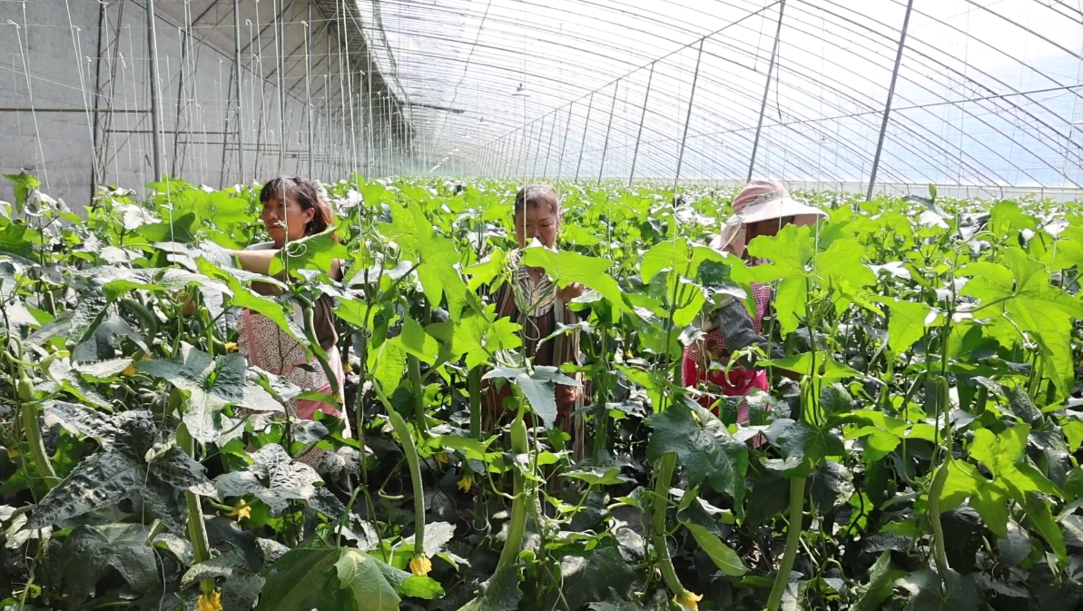 七星关区朱昌镇农业科技示范园技术员赵安帮向记者介绍:“我们公司总共57个大棚,种植面积210亩,主要是种植黄瓜、西红柿、丝瓜,上半年产值大约在700万左右,园区需要大批的工人务工,每天平均的话有110多人在上班。”