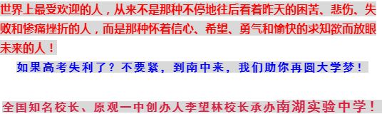 但高考,绝不以一次成败论英雄;人生,因为挫折才显出意志的刚强!朋友,是迈出关键一步的时候:蛰伏一年,幸福一生!贵阳市南湖实验中学拥有优秀的教师团队,丰富的复读生提质增分的教学经验。我们期待你再战一年的勇气,全力助你发愤图强,重整战甲,凯旋而归!