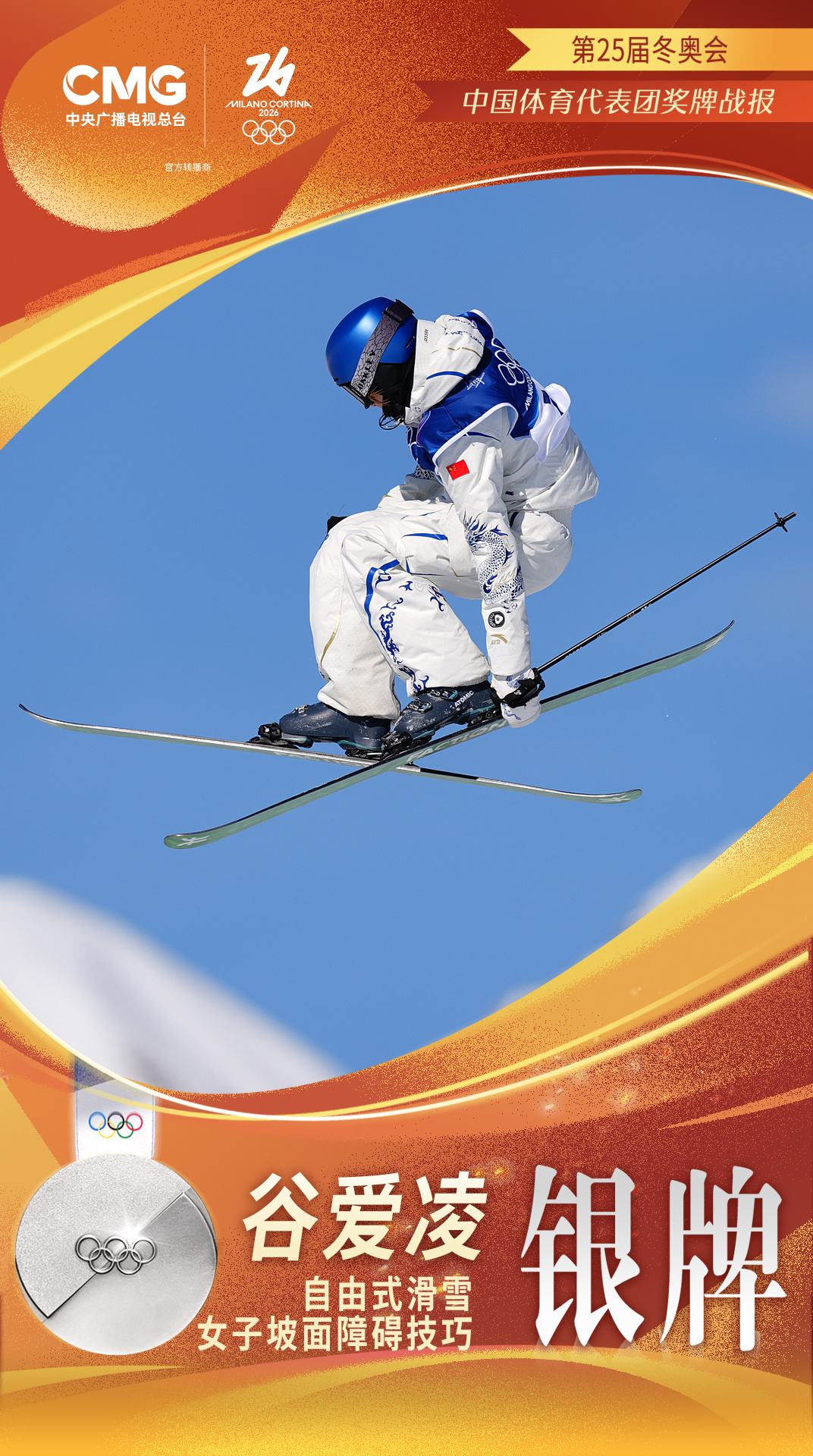 北京时间2月9日,在米兰-科尔蒂纳冬奥会自由式滑雪女子坡面障碍技巧决赛中,中国选手谷爱凌夺得银牌。