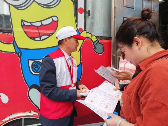 李运坪向过往市民发放无偿献血宣传资料。 万州区委宣传部供图