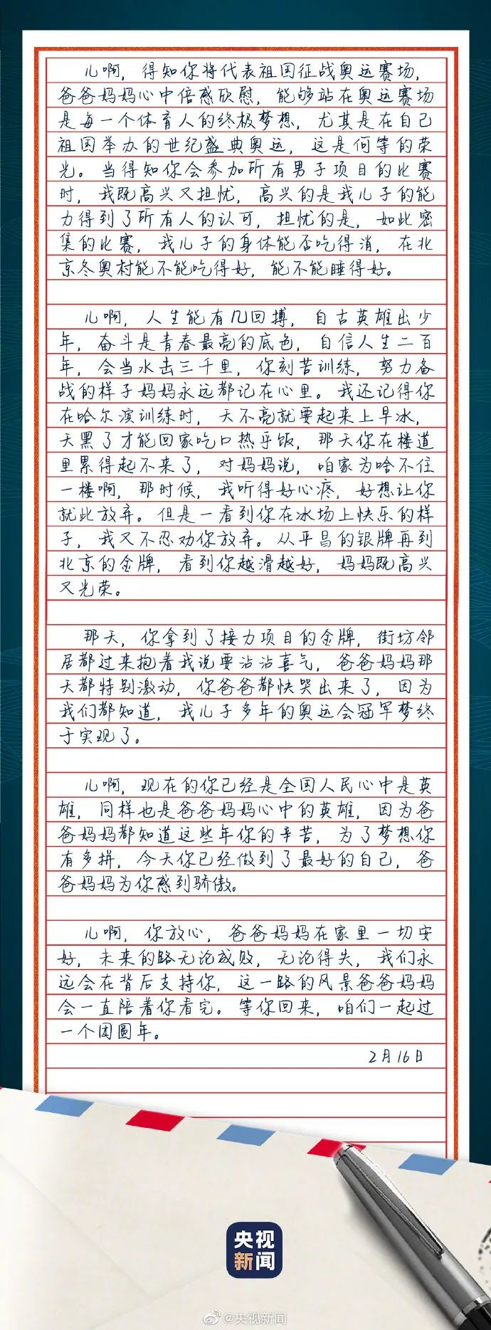 信中提到,任子威夺冠后,街坊邻居都过来拥抱李艳说要沾沾喜气,“你爸爸都快哭出来了,因为我们都知道,儿子多年的奥运会冠军梦终于实现了。”
