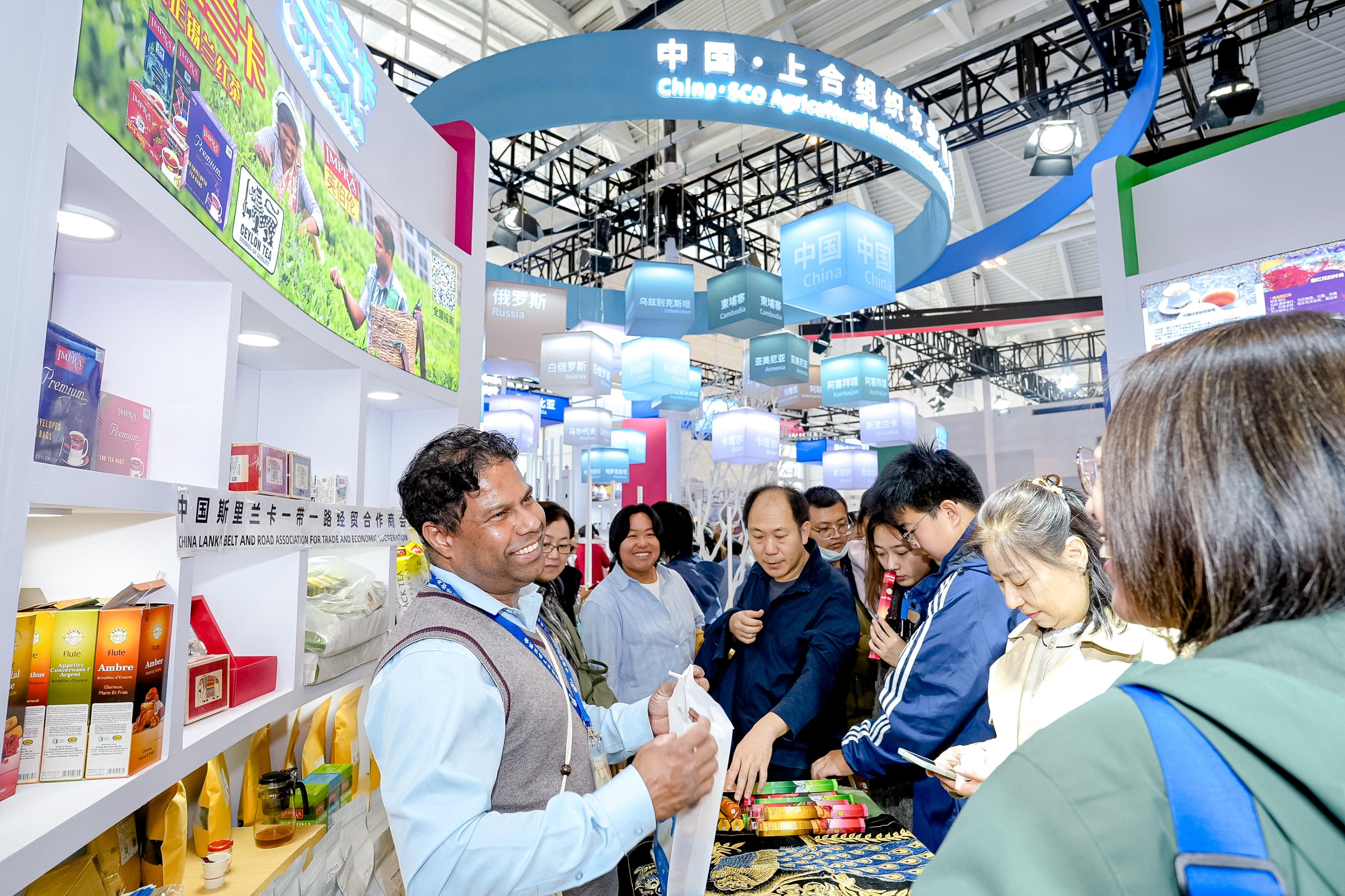 为呼应上合组织天津峰会成果,本届农交会特别设立中国-上合组织农业国际合作馆。展区汇聚了俄罗斯巧克力、吉尔吉斯斯坦蜂蜜、巴基斯坦精品饼干、斯里兰卡红茶等7国特色农产品,生动展现了区域农业合作的广度与深度。