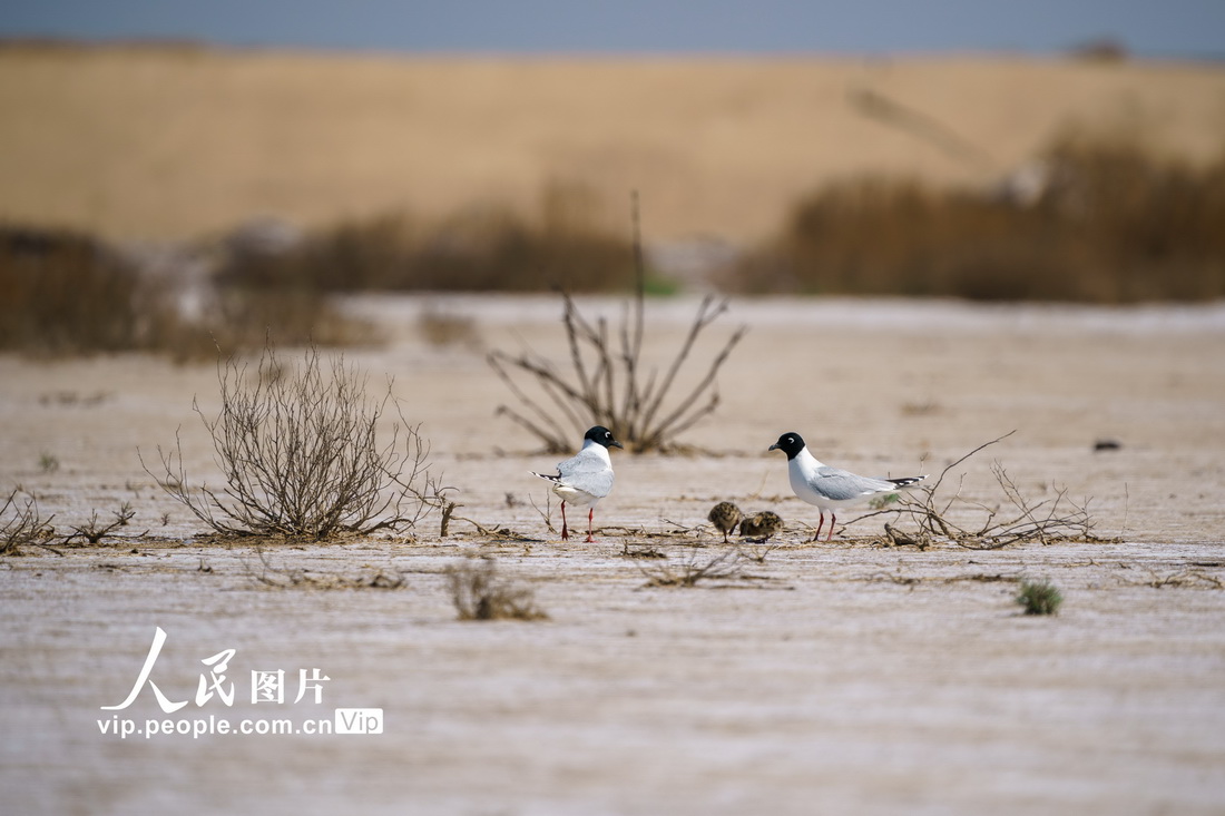 2022年5月27日,黑嘴鸥在孵化繁育幼鸟。