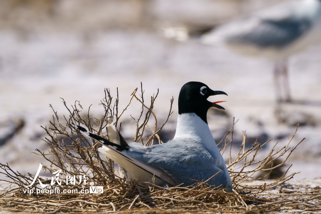 2022年5月27日,位于山东省东营市的山东黄河三角洲国家级自然保护区内,国家一级保护动物黑嘴鸥进入孵化繁育旺季。赵英丽摄(人民图片网)