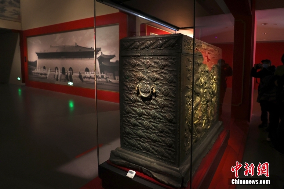 在“明清档案”专题展厅,金匮吸引参观者。金匮原存放于明清两代的皇家档案库皇史宬正殿内,用以盛装皇帝的实录、圣训(明代称“宝训”)等珍贵典籍。