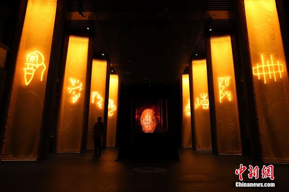 参观者在“殷墟甲骨”专题展厅参观。
