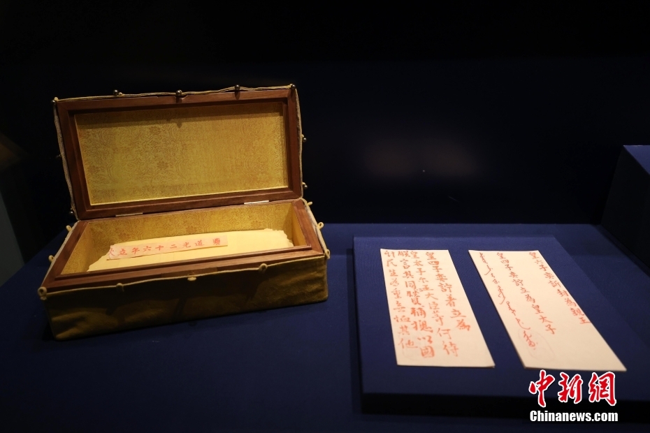在“明清档案”专题展厅展出的道光帝秘密立储谕旨并匣(仿制品)。