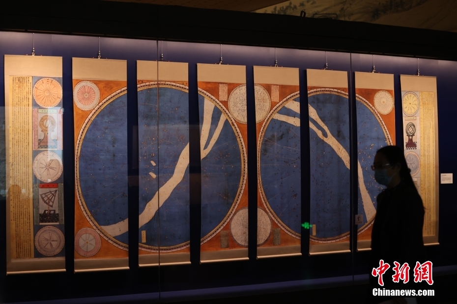 在“明清档案”专题展厅展出的明代崇祯年间赤道南北两总星图。