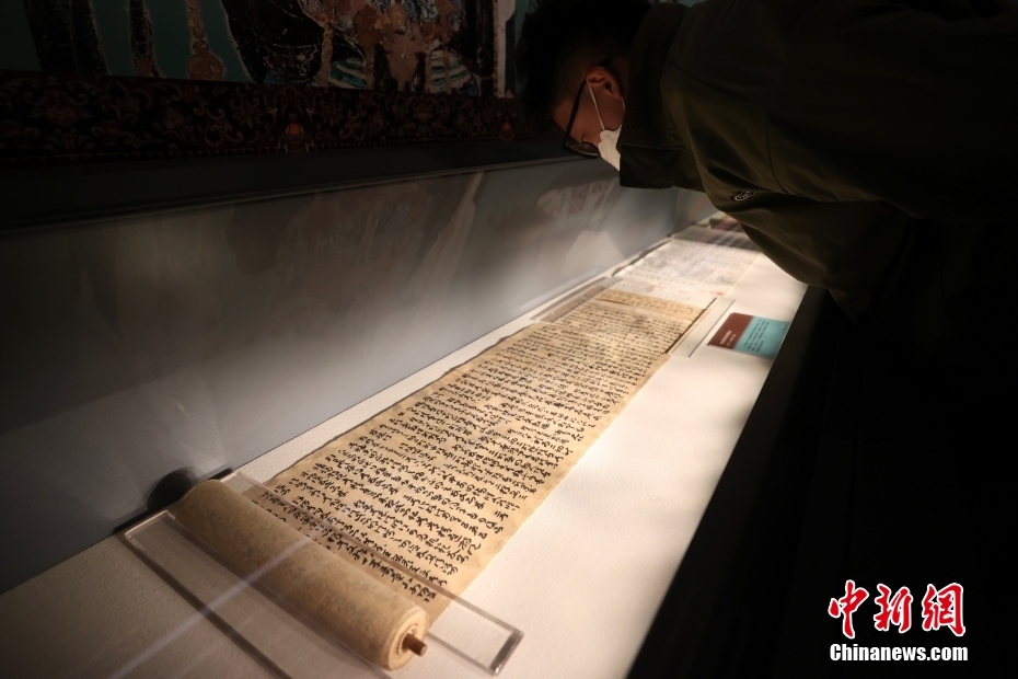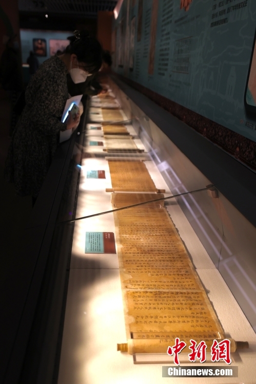 参观者在“敦煌遗书”专题展厅参观。