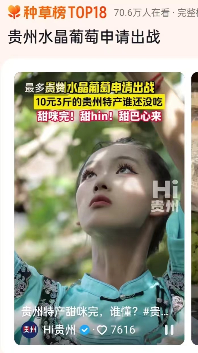 近期“Hi贵州”平台发布的水晶葡萄