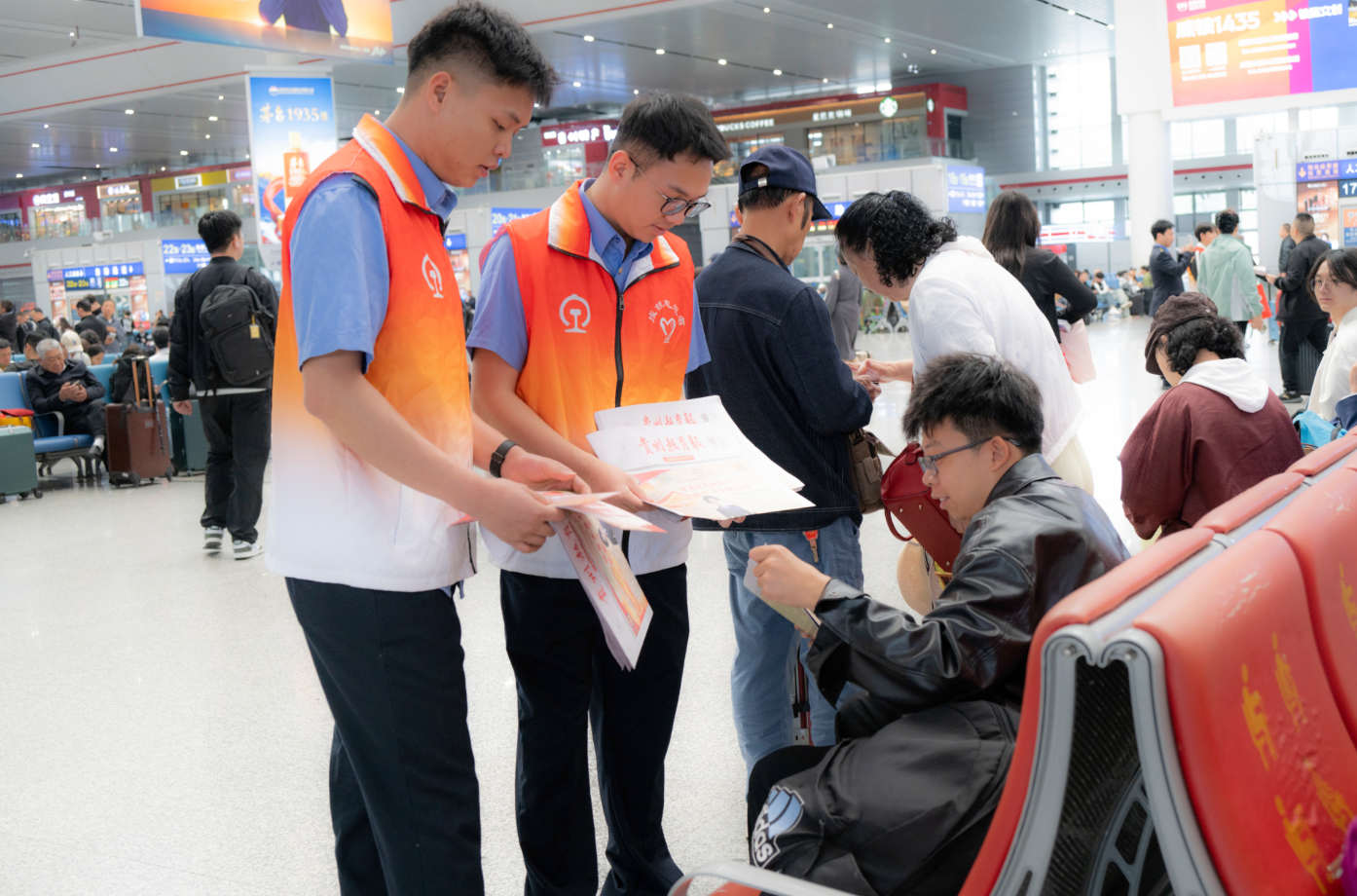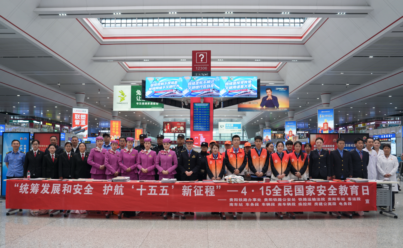 4月15日是第11个全民国家安全教育日。为深入贯彻总体国家安全观,紧扣“统筹发展和安全护航‘十五五’新征程”主题,贵阳铁路办事处牵头,联合贵阳铁路公安处、铁路运输法院、贵阳车站、贵阳房建公寓段、贵阳南车辆段等12家铁路单位,组织40余名青年志愿者,在贵阳北站候车室集中开展主题宣传活动,把国家安全与铁路安全知识送到旅客身边,共筑安全防线。