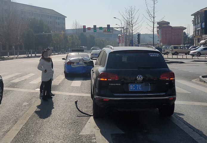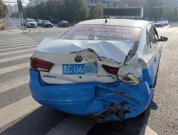 12月22日下午,在遵义播州大道与文武路红绿灯路口,胡某敏因疲劳驾驶,致使越野车与前方等待红灯的出租车发生追尾碰撞。造成两车受损,幸好双方均系上了安全带,人员并无受伤。