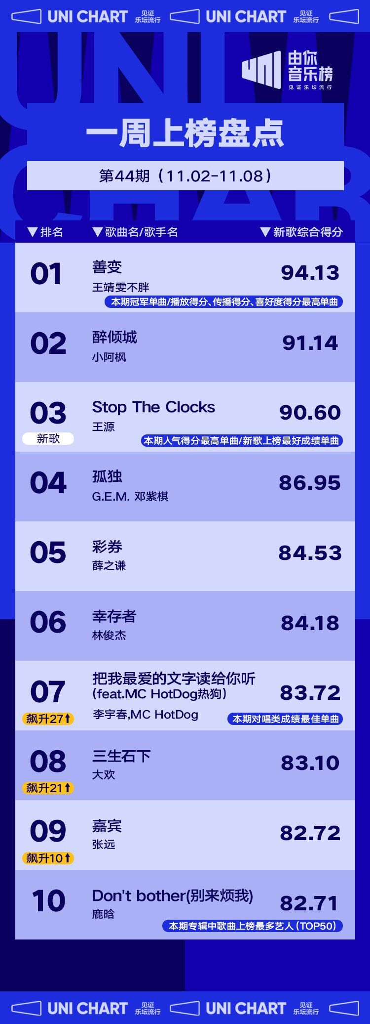 乐坛周报丨第44期《由你音乐榜》一周上榜盘点