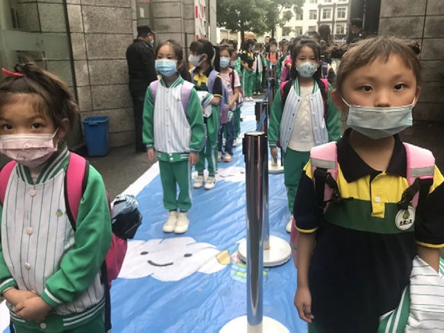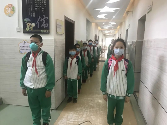 尽管大家好久不见,有千言万语要说,但为了自身和学校的安全,无论是排队等候进入班级,还是静坐等待上课,依然严格遵守纪律要求,保持距离。