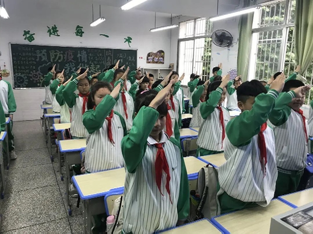 在今天的“复学第一课”的活动中,队员们还学习了疫情期间在校学习的基本流程,掌握了洗手、防护、午间就餐、上学进校、放学离校的具体做法,学习新技能,学习如何保护自己。