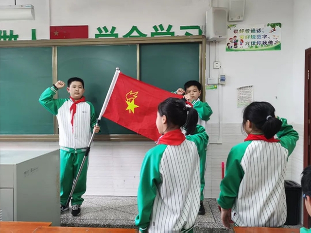 他们在队旗下庄严宣誓,一定要努力学习,努力成为一名不负嘱托有担当的好少年。