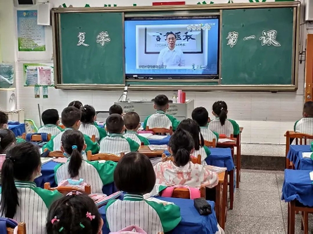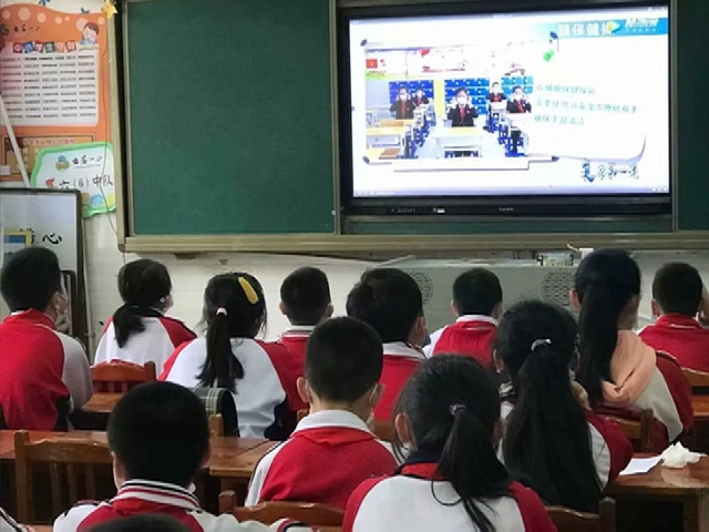 “叮铃铃......”复学第一课终于开始了,老师们利用多媒体,组织全体学生观看了“复学第一课”的视频,队员们在视频中了解到了许多疫情防控知识,疫情防控中的感人故事。