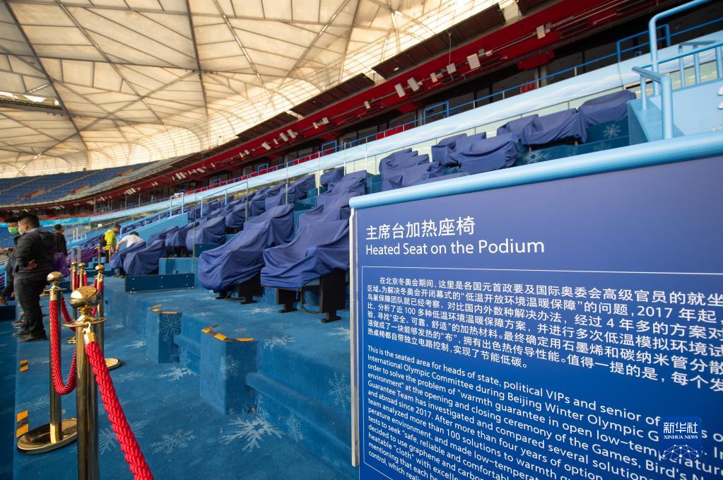 这是4月20日拍摄的“鸟巢”主席台区域展示的加热座椅。新华社记者 陈钟昊 摄