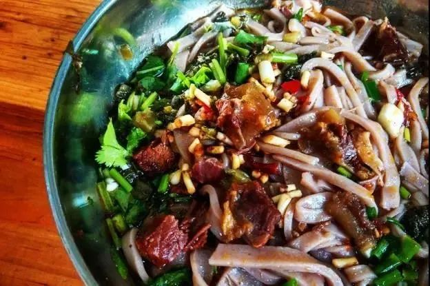 红米粉是剑河百姓最喜欢的早餐之一。新鲜的红米粉切条后过水煮熟,放入哨子等佐料搅拌均匀即可食用。刚出锅的红米粉,香气四溢,让人直流口水。