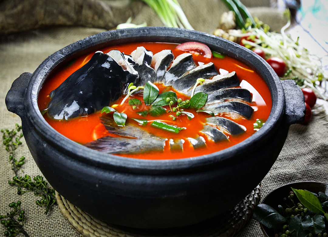 剑河酸汤鱼是苗族特有的美食,其入口酸味鲜美、辣劲十足,让人胃口大开。鱼肉味道鲜美、口感爽滑,无任何腥味,久煮不老,营养丰富。