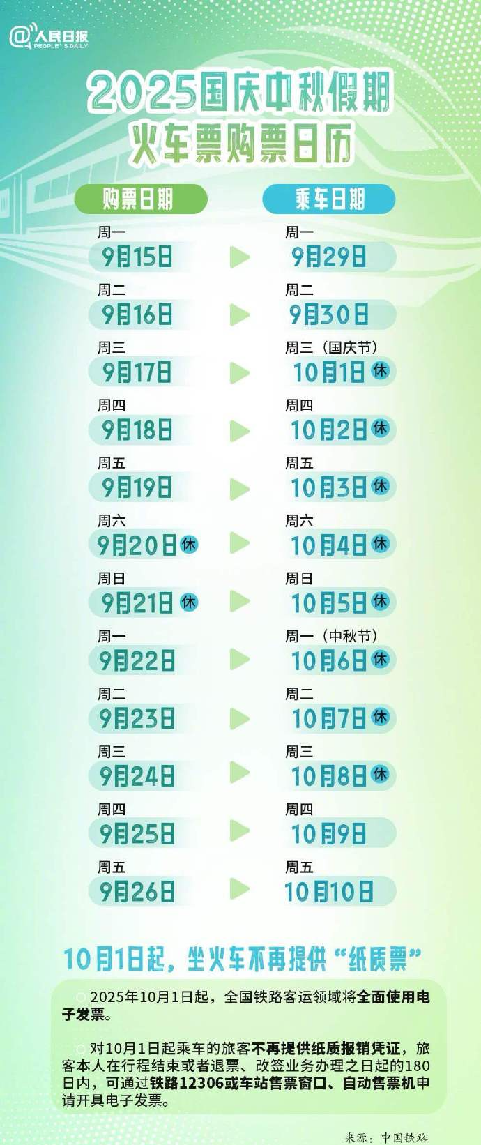 注意!国庆中秋购票4个关键时间