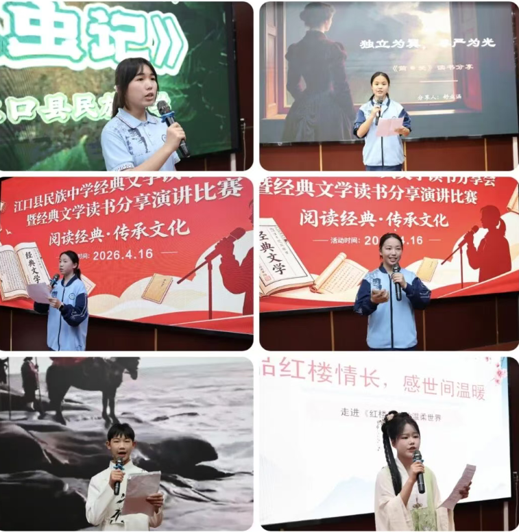 为落实新课标整本书阅读要求,营造书香校园氛围,4月16日下午,江口县民族中学举办 "书香润心,悦读启智" 经典文学读书分享会暨演讲比赛。师生同台,以演讲、角色扮演、思维导图等形式,共赴文学盛宴。