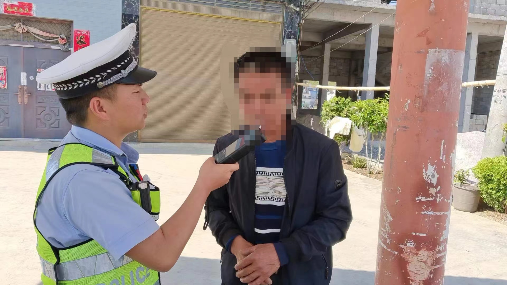 民警:师傅麻烦您读一下酒精检测设备仪器上显示的 数字是多少?